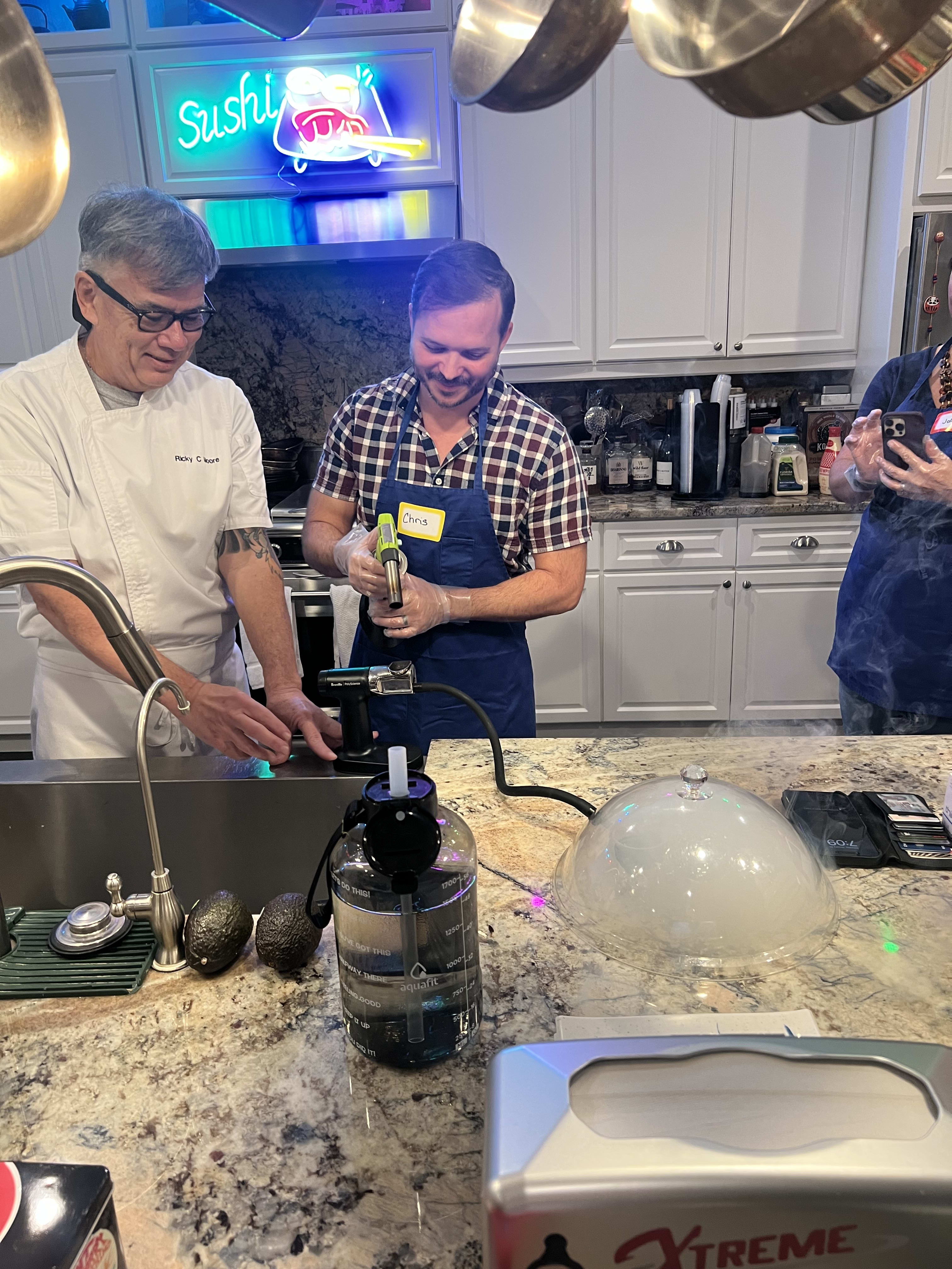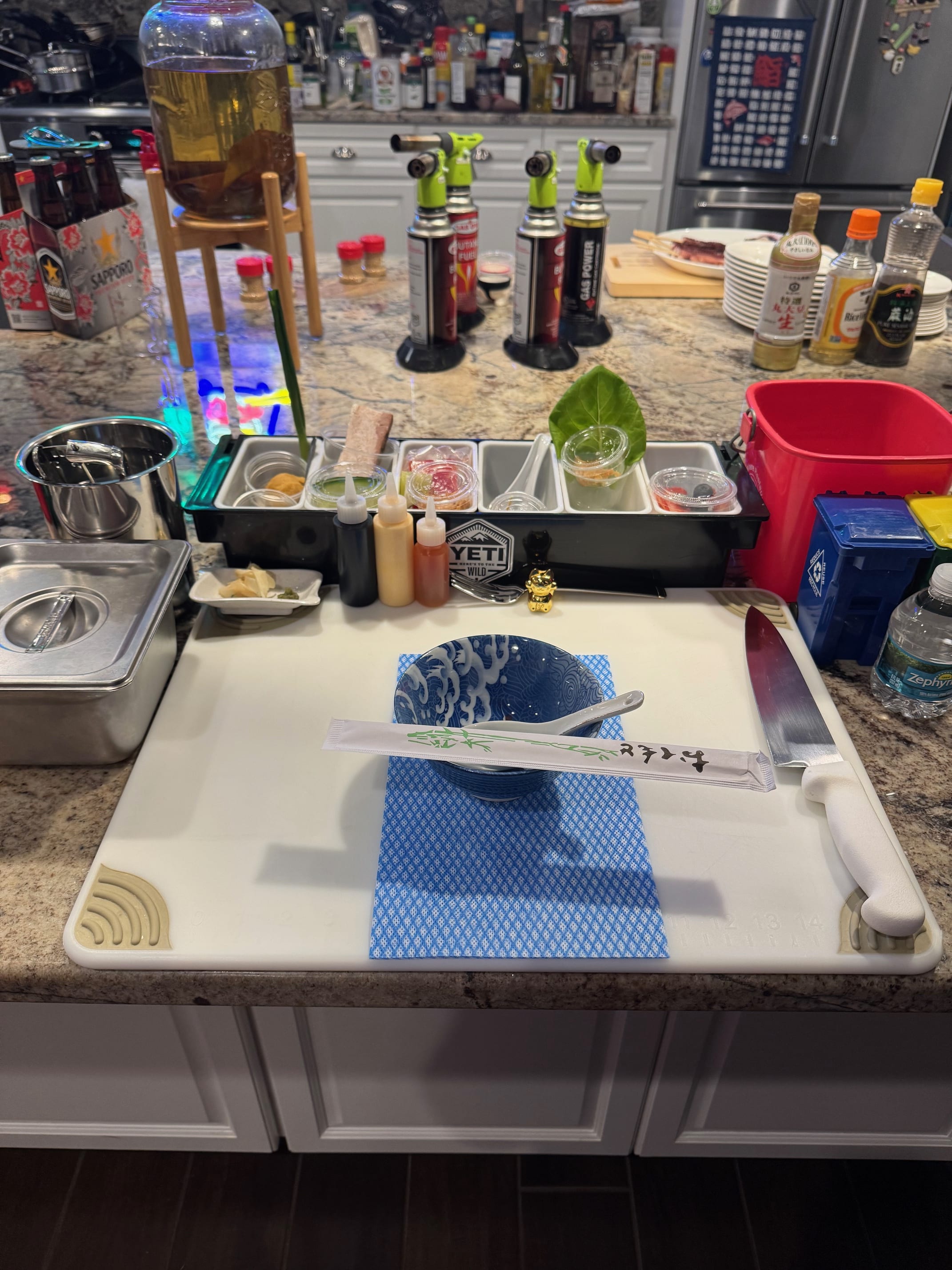 He set a great atmosphere with music, and a food station set up like you would see in sushi bars, so you did everything that they would do.